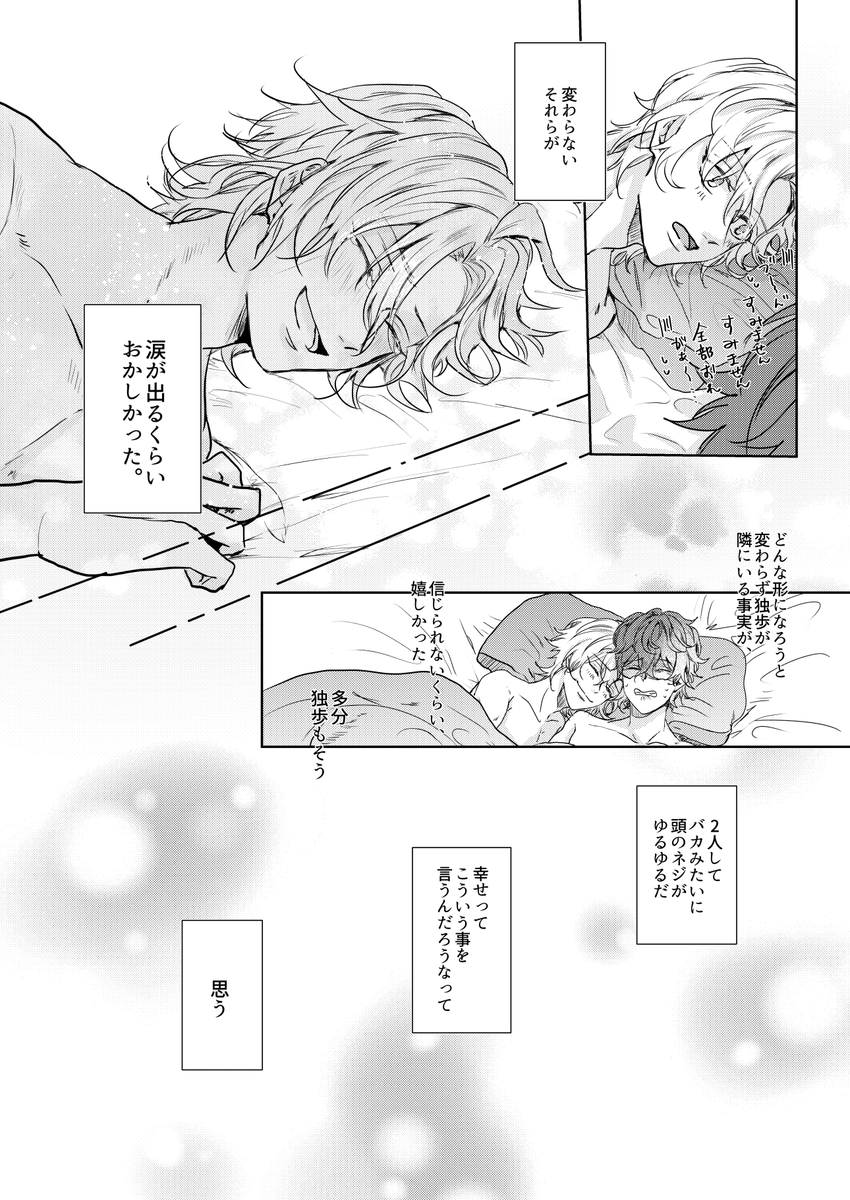 12/12 どんな日でもふたりならDR2021(どひふ新刊サンプル 5/1) 「愛とは花、重さは21グラム」 全年齢/B5/60p/¥700 どひふのターニングポイントをつめた短編集です。捏造盛りだくさん。コミカライズ単行本未収録のネタバレあります。リプツリーに通販開始しています。↓ 1、引っ越し後の二人