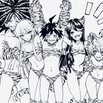 リクエストの虎ビキニのハルマキ、流流歌、狛枝、罪木、日寄子です