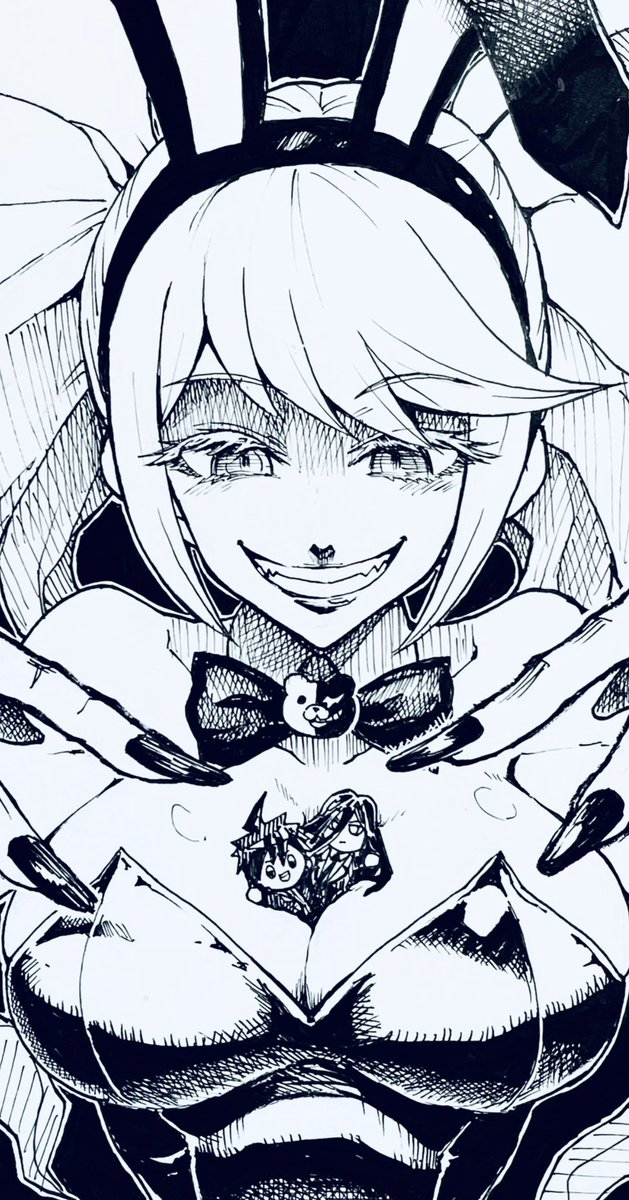 ちょっとしたお願いがあったので手遊びで王馬とハルマキバニーのラクガキです