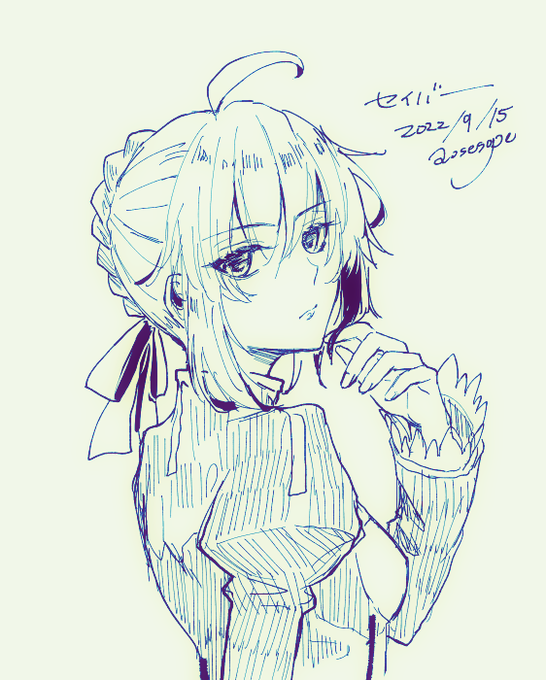 72 312 このアカウントFateですか?って言われてFateじゃないですね(震え)ってなったので正月ぶりにせいばー描きました… 22/09/15 02:55