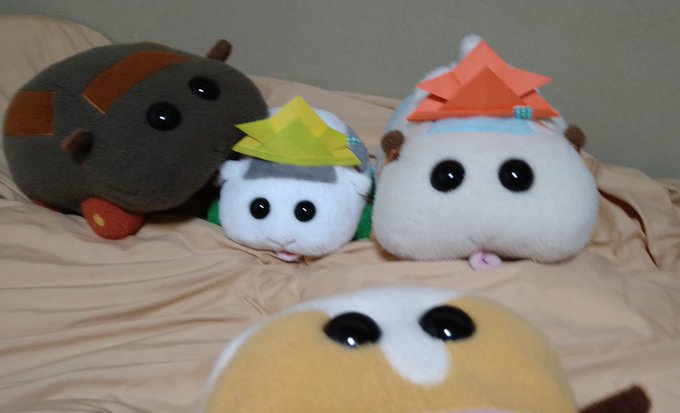 0 11 娘にカブトを作って貰ってご機嫌なアビー&シロモと、それを羨んでいるポテトと、シロモが食べ物だと錯覚しているテディ✨✨✨ #モルカーファンアート 21/11/23 20:35