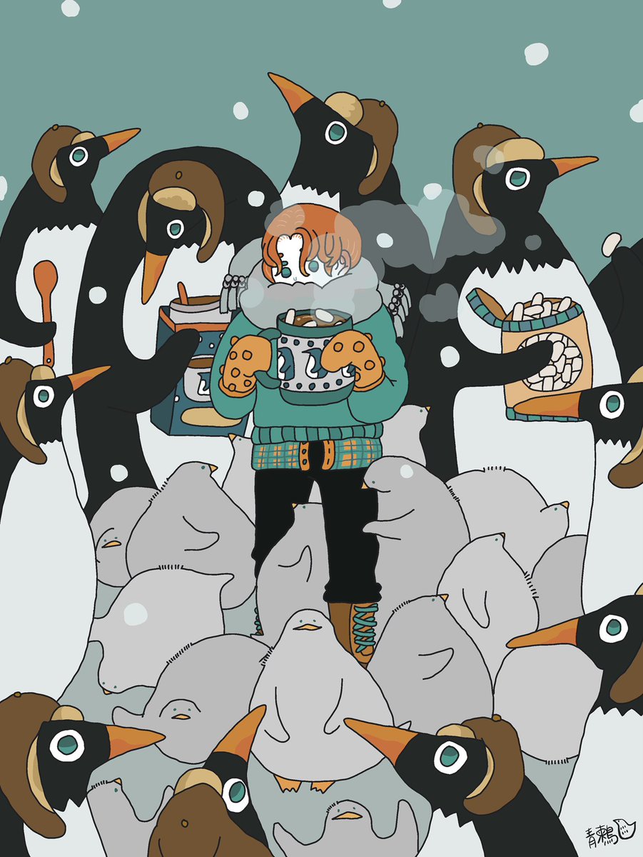 あったかココア #イラスト #イラスト好きさんと繋がりたい #冬の創作クラスタフォロー祭り #ペンギン