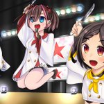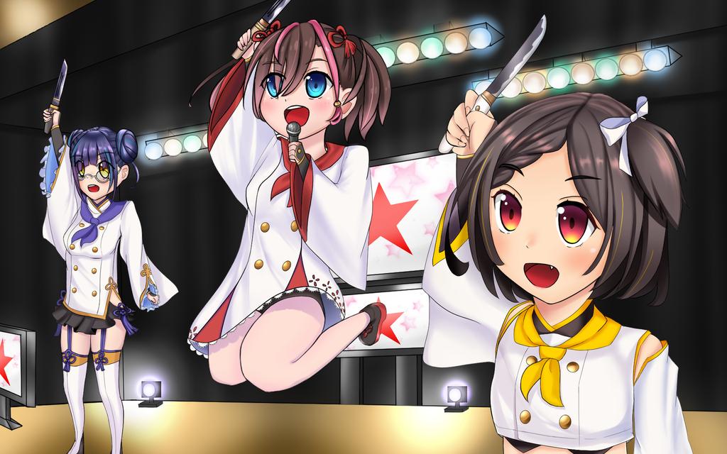 遅くなりましたが、マチアソビで夢追い華を歌う庖丁三姉妹を描きました!特に三姉妹が剣を掲げるポーズはかっこよくて印象に残っています最高のライブをありがとうございました!! #天華百剣 #天華百剣お絵かき部 #マチアソビ