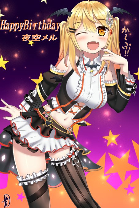 メルちゃんお誕生日おめでとう!! お歌配信やASMR配信でとても癒されています!前にメルちゃんの新衣装を見たときずっとイラストを描きたい!と思い誕生日に合わせて描きました‼️これからもずっと応援しています!か~ぷ!! #メルArt #夜空メル #夜空メル誕生祭2020