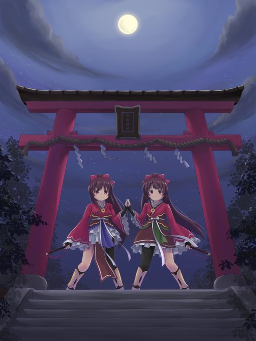 225 642 中秋節でもあるので満月下の双子を描きました🌕 なんか中ボス感 #天音姉妹web合同 #マギレコ 22/09/10 00:24