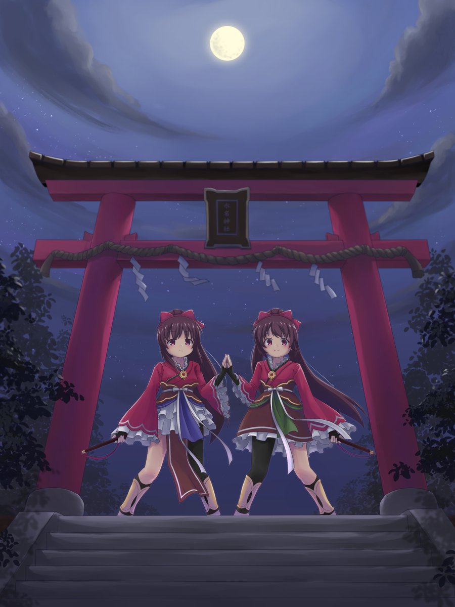中秋節でもあるので満月下の双子を描きました🌕 なんか中ボス感 #天音姉妹web合同 #マギレコ