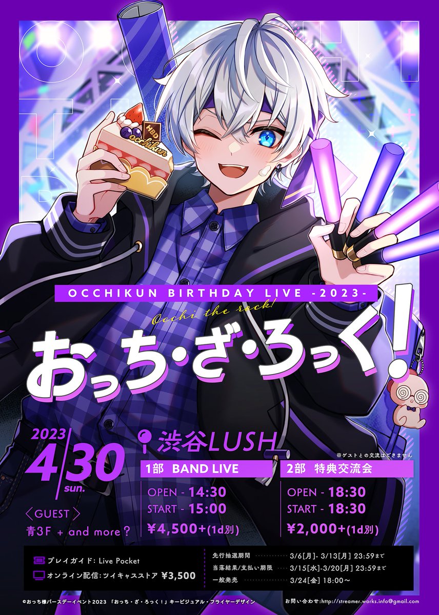 💜🧢💜 この度、おっちさんの生誕ライブ「おっち・ざ・ろっく!」のキービジュアル&ロゴ&フライヤーデザインを担当させていただきました! 明日3/6からチケット先行抽選だそうです、よろしくお願いします〜っ🥳🎂✨ #おざろ生誕祭2023