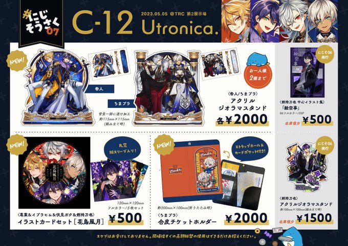 [🌟 #にじそうさく07 ] にじそ07にて頒布した新グッズたちの通販受付を開始しました! 自家通販のため5月末発送を予定しておりますが、お買い求めのグッズの種類によっては早めに発送ができるかもしれません🙏✨よろしくお願いします! 通販サイト(BOOTH)🔽 utronica.booth.pm