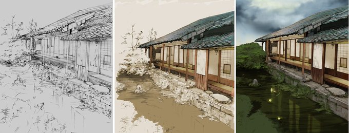 だいぶ前のものですが #このタグを見た人はラフ画とその完成絵を見せる