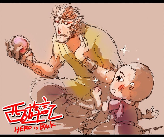 大雑把なあらすじは封印のためにかつての力が使えず、苛立ち、諦め、やさぐれている元ヒーローがちびっ子のために再びヒーローになるお話。お兄さん以上オジサン手前な雰囲気の斉天大聖がとにかくカッコイイ!とりあえず描き殴りおく。