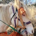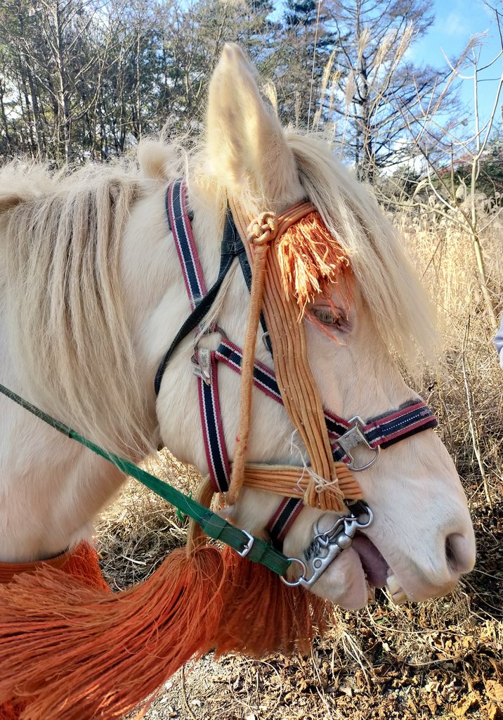 @black_board ありがと〜!乗馬経験の振り分けでたまたま白馬に騎乗することになった。御神馬も勤める翼くんだよ。