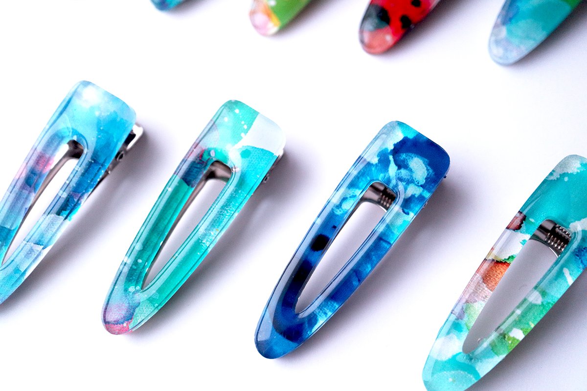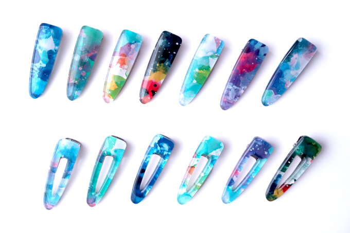 ヘアクリップ新色! デザフェスで結構減ってしまったので作り足しました✨ 青色好きな方ぜひ🥰 穴有りver無しverどっちもかわいいのでぜひ見に来てください! #コミティア142 #コミティアお品書き