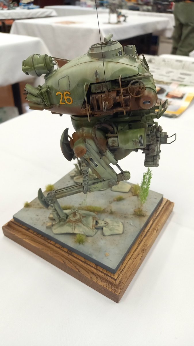 #北海道マシーネンの会 #マシーネンクリーガー #マシーネン 傷痍軍人仕様のラクーンを作ってみました。脚部を板バネにして衝撃吸収用の補助輪を付けてみました♪(*´ー`*) いつも猫の額ほどのスペースで制作したり撮影してるので展示会のスペースをかりて撮影。(  ̄▽ ̄)やっぱり広いのはいいわ~~