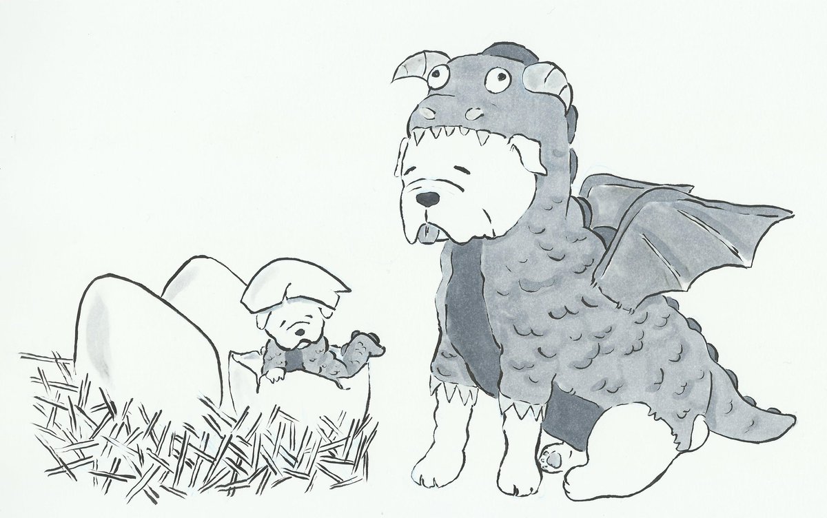 23. Pequinès il·lusionista i la visió d’un dog argentí #doggosanddragons #dogs #pekingese #dogoargentino #illusionist #inktober #inktober2020 #dogtober #dnd #dndcharacter #rol #draw #ink