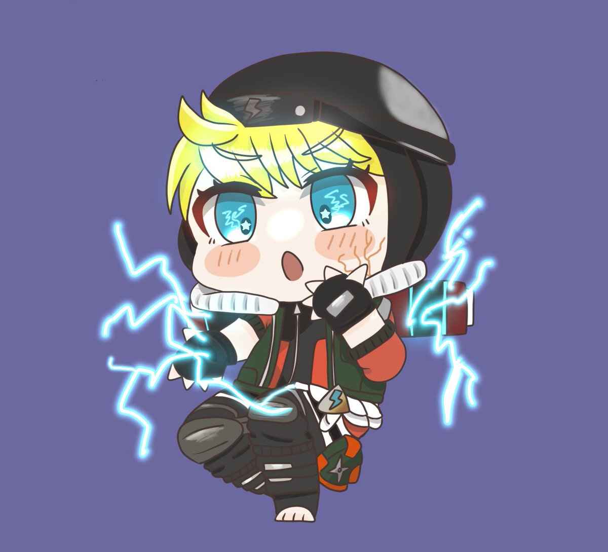 新スキンわっちょん⚡️ クラフトメダル頑張って貯めないと..._(:3 」∠)_ 新しいバナー、手から電気出す感じ凄く好き🥰 #APEXイラスト #エーペックス #ApexLegends #イラスト