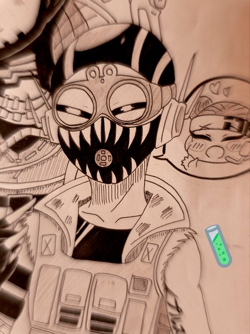 アート部の文化祭用のイラスト🧪 オクタンが上手く描けたきがする🤔 ミニキャラと違って難しい... #APEXイラスト #イラスト