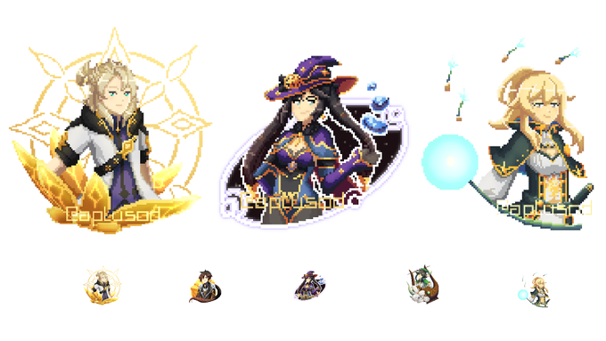 pixel art of albedo, mona, and jean #GenshinImpact #原神 #pixelart #ドット絵 #Albedogenshinimpact #mona_genshin_impact #jeangenshinimpact