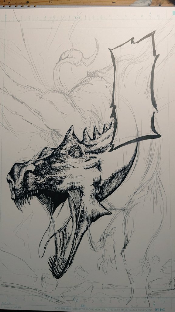 今までやったこと無いペンの使い方を少し試してる なかなか良い感じ #ファンタジー #漫画 #アナログ絵 #weapons&warriors