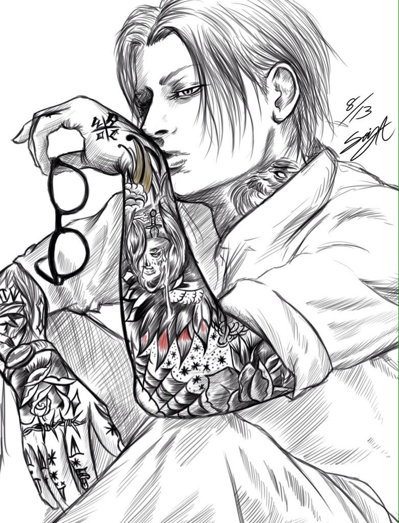ぐーぱんち氏からお題頂いたTattooだらけの男性描きましたー