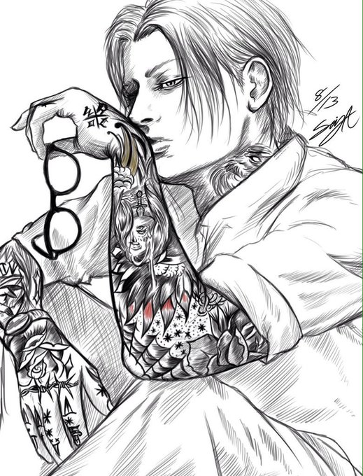 3 18 ぐーぱんち氏からお題頂いたTattooだらけの男性描きましたー 19/08/13 21:49