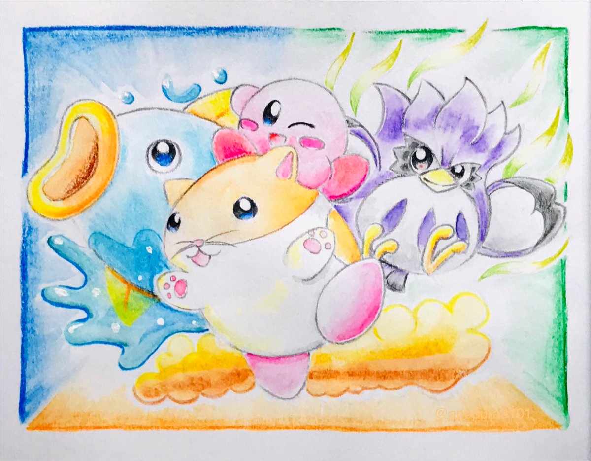 #今月描いた絵を晒そう 毎年恒例、カービィシリーズ発売日ラッシュをなんとか乗り越えることが出来ました😅今年からは3日連続もあるよ!(滝汗)