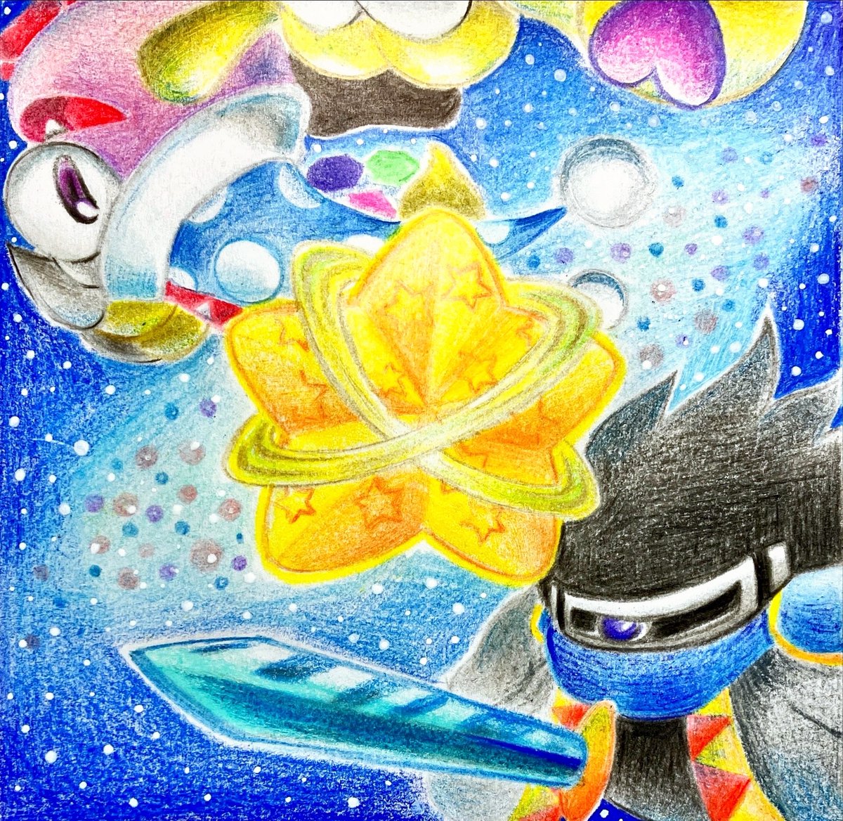 #カービィ版深夜のお絵かき60分一本勝負 久々の参加です(11時20分くらいから開始)下書きなしで色鉛筆一発描きの、ミラーコンビ!✨