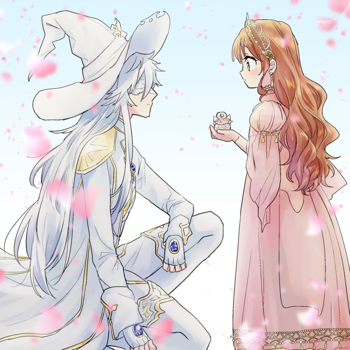 #新しいゲーム始めました お姫様視点だと最高にキラキラしたシーンなんだろうなぁと……描いてみたかったのです……☺🌸 このあとほっぺにちゅーするのドキドキでしょうね……! ※お姫様の容姿などは捏造です