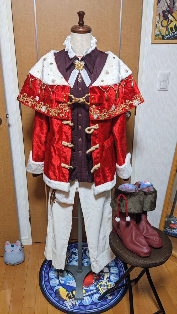 「魔法使いの約束~輝く空のペールノエル」よりファウストの衣装を製作しました🎅🏻🎄.* エンボス加工されたベロアをメイン布に使い煌びやかに仕上げました✨✨ 背面のお星様が若干数足りなくて寂しいことになっちゃったのが悔しい、買い足します😵 #輝く空の魔法使い製作🎅🏻 #ナオ工房 #まほやく_cos