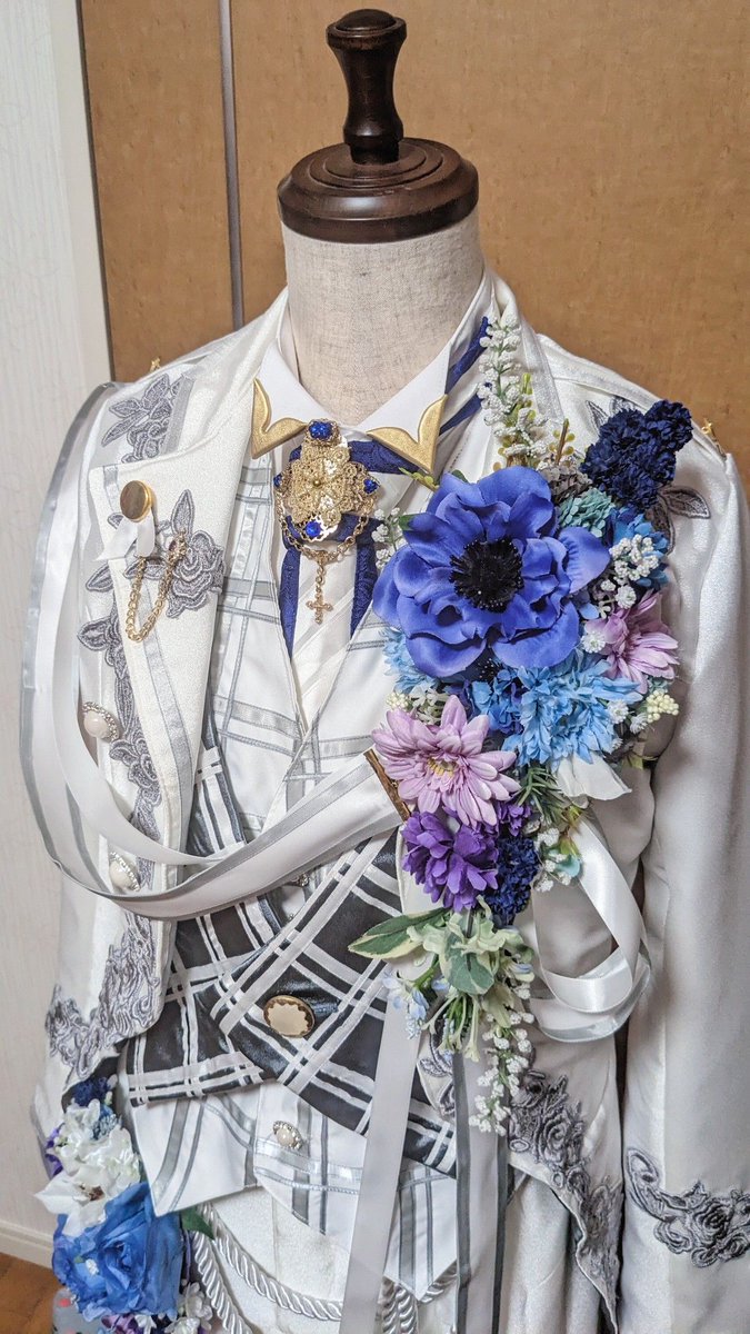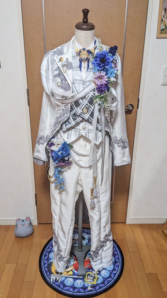 「魔法使いの約束~花雨をシェリーと見上げて」よりファウストの衣装を製作しました🤍🕊🏳️💍 ドレス系のサテンと違ったキラツヤ感が欲しくてツイルにジョーゼットを重ねて製作しました。 #晴れ着の魔法使い製作💒 #ナオ工房 #まほやく_cos
