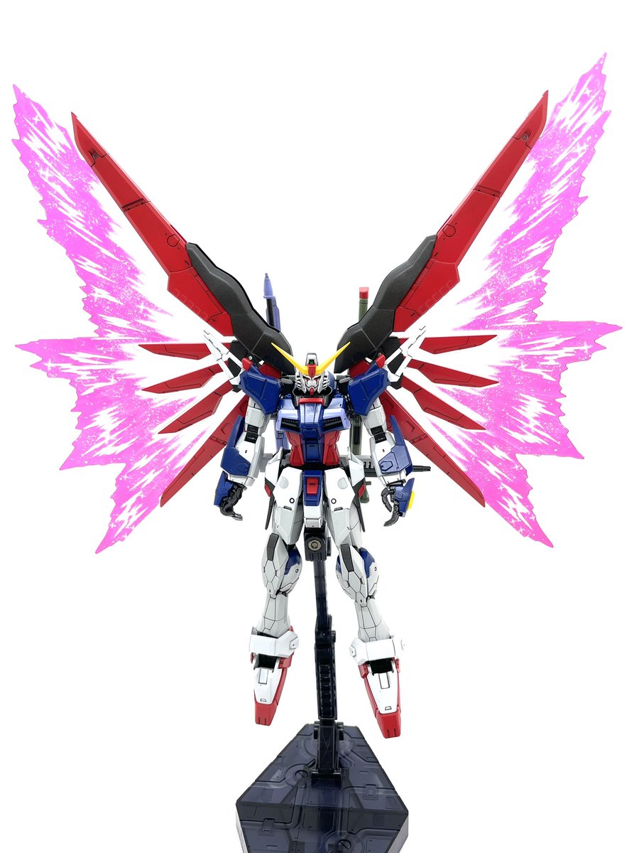 121 1376 #ガンプラ #デスティニーガンダム 完成しました! エアブラシで塗装して、トップコート(半光沢)まで仕上げたのはこれが初めて。 スジ彫り頑張ったつもりでも彫りがあまく、綺麗に入らなかったりでまだまだ理想には遠いですが頑張って作っていきます! 22/04/12 11:28
