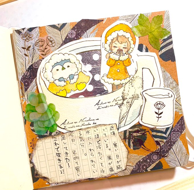 0 3 最近寒い日が続きますね_(ゝLꒊ:)_ #コラージュノート #水彩 #イラスト好きな人と繋がりたい 21/01/11 19:10