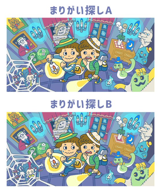 ちと季節外れですが。 間違いは全部で7か所 #間違い探し #ハロウィン #イラスト #イラスト好きな人と繋がりたい #絵描きさんと繋がりたい