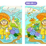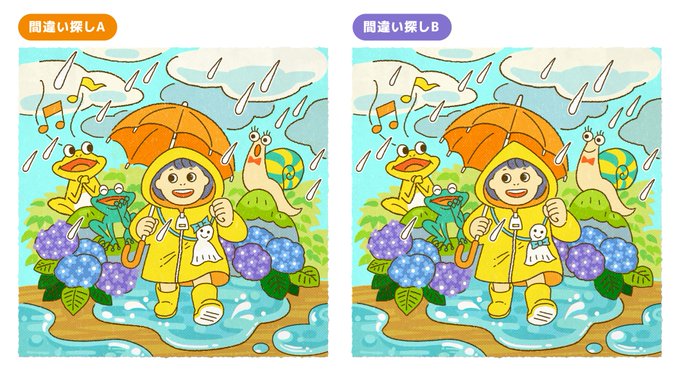 間違いは全部で7か所! #間違い探し #梅雨 #イラスト #イラスト好きな人と繋がりたい #絵描きさんと繋がりたい