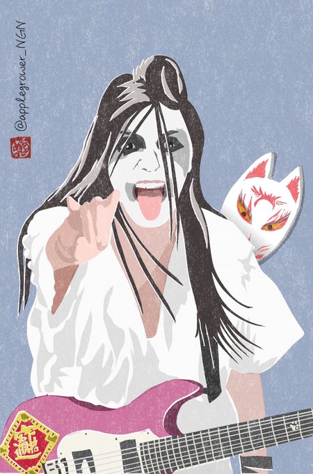 ここしばらく雨がちな天気で畑仕事はお休み。 これまで脇役だった神様をアップで、版画タッチで描き直しました。単一色を重ね合わせて描いて来たので、版画との馴染みは良いようです。 #babymetal_fanart #BABYMETAL