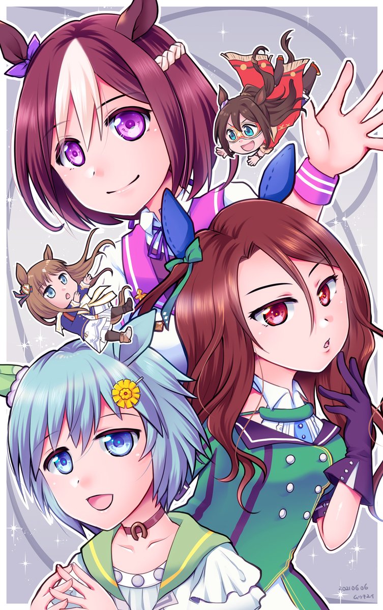 22 53 ウマ娘で98世代🏇 (ミニキャラ有り/無し) スペシャルウィークもキングヘイローもセイウンスカイもエルコンドルパサーもグラスワンダーも初描きだけど楽しかった~☺️ 21/06/06 12:21