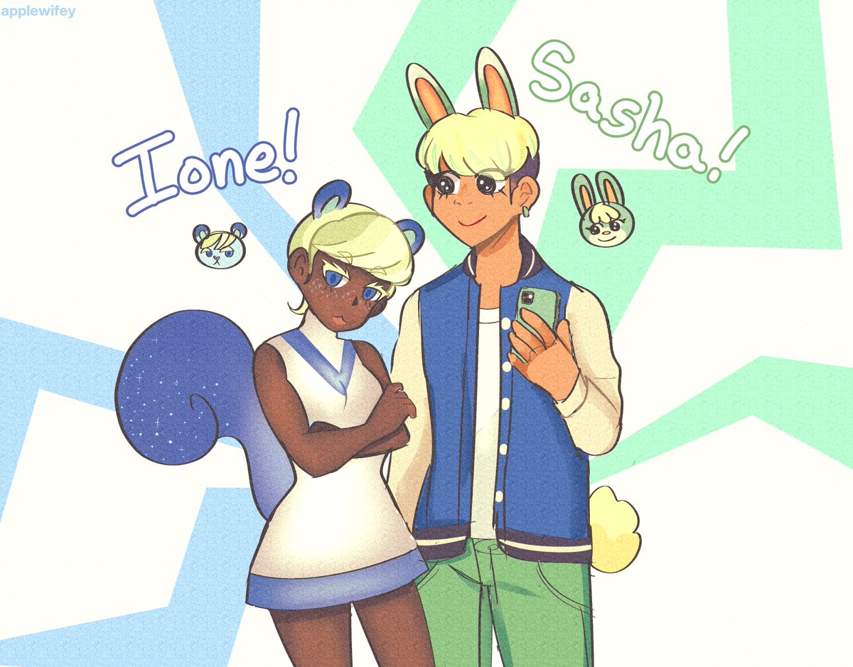 doodling tonight and i made gijinkas of ione and sasha from animal crossing new horizons!! #acnh #fanart #AnimalCrossingNewHorizons