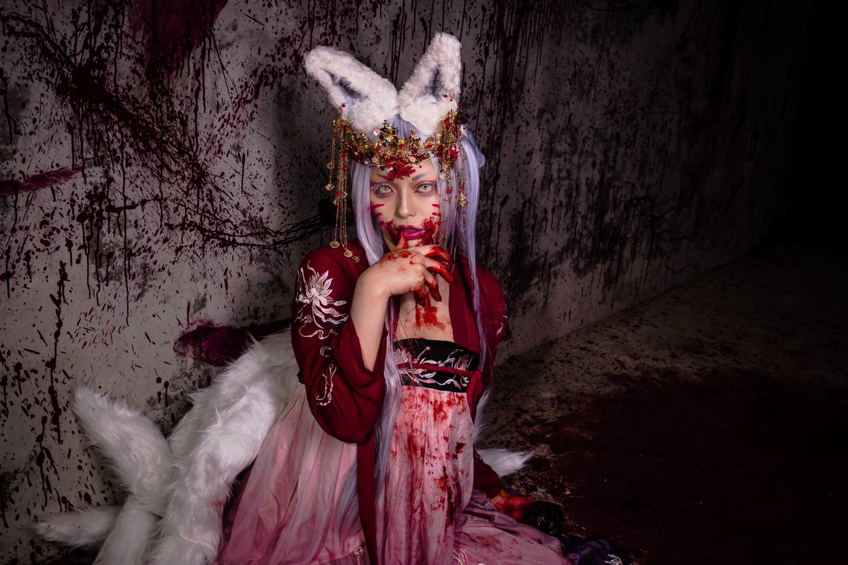 【創作cos/妖狐×漢服】 ⚠️血糊注意⚠️ 📸:アシタちゃん(@ashita1114)