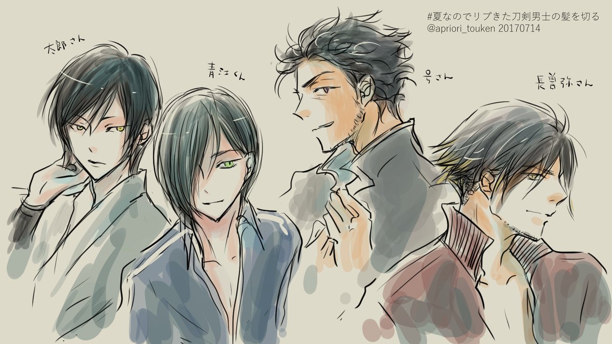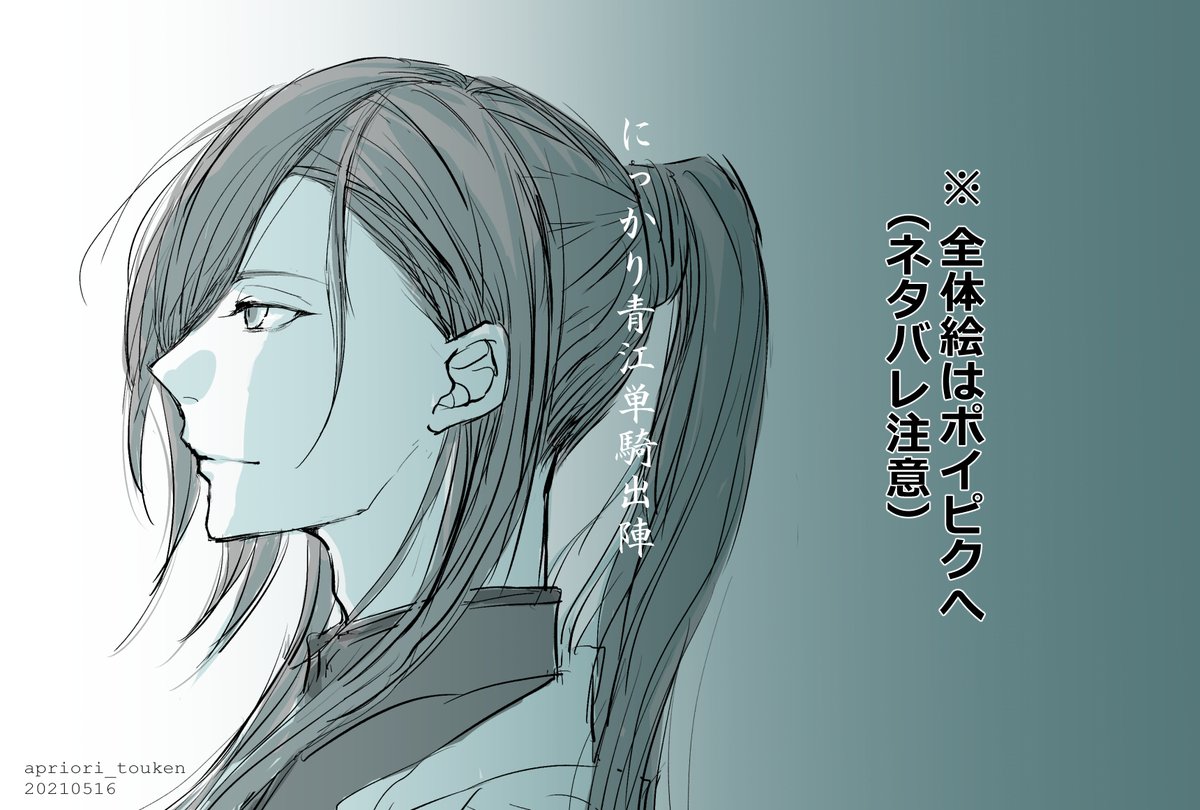 青江単騎の検索でちらほら来てくださる方いらっしゃるので青江君過去絵再掲しておきますね。3枚目は最初に青江単騎の配信を見た時に描いた時の絵の一部。全体絵はポイピクでどうぞ。4枚目は髪を切るシリーズ。 poipiku.com/164462/4423495…