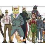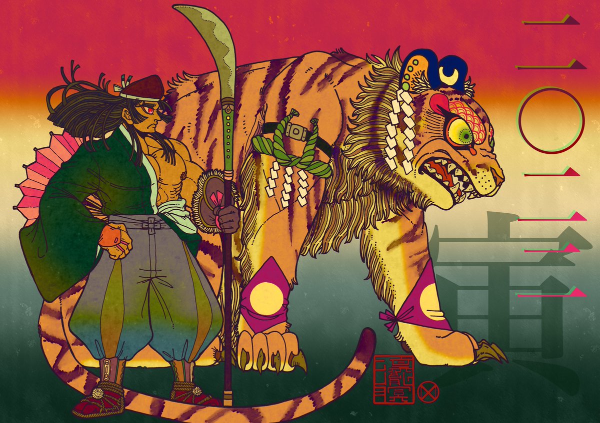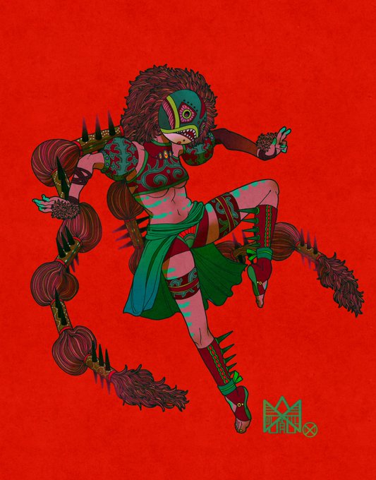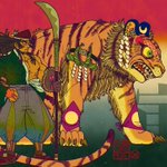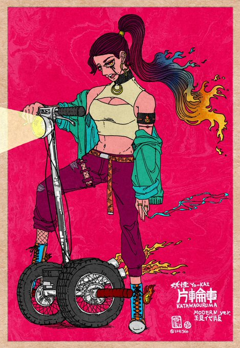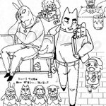 #一次創作絵師拡散フェス01 ほぼお面キャラと妖怪しか出てこない人間刑事(40)と新米妖怪刑事(300)のバディ刑事モノ漫画を描いてます。 (支部に第一話載せてあります) 次いでに和紙でお面作ったりもしてます