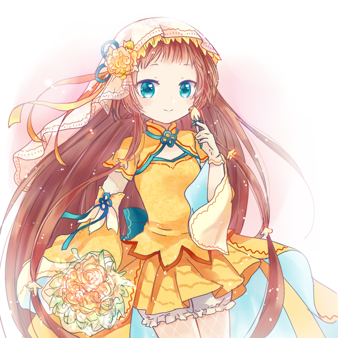 パイナップルケーキちゃんかわかわのかわ 花束は薔薇なのかな~? #フーファンお絵描き #フードファンタジー