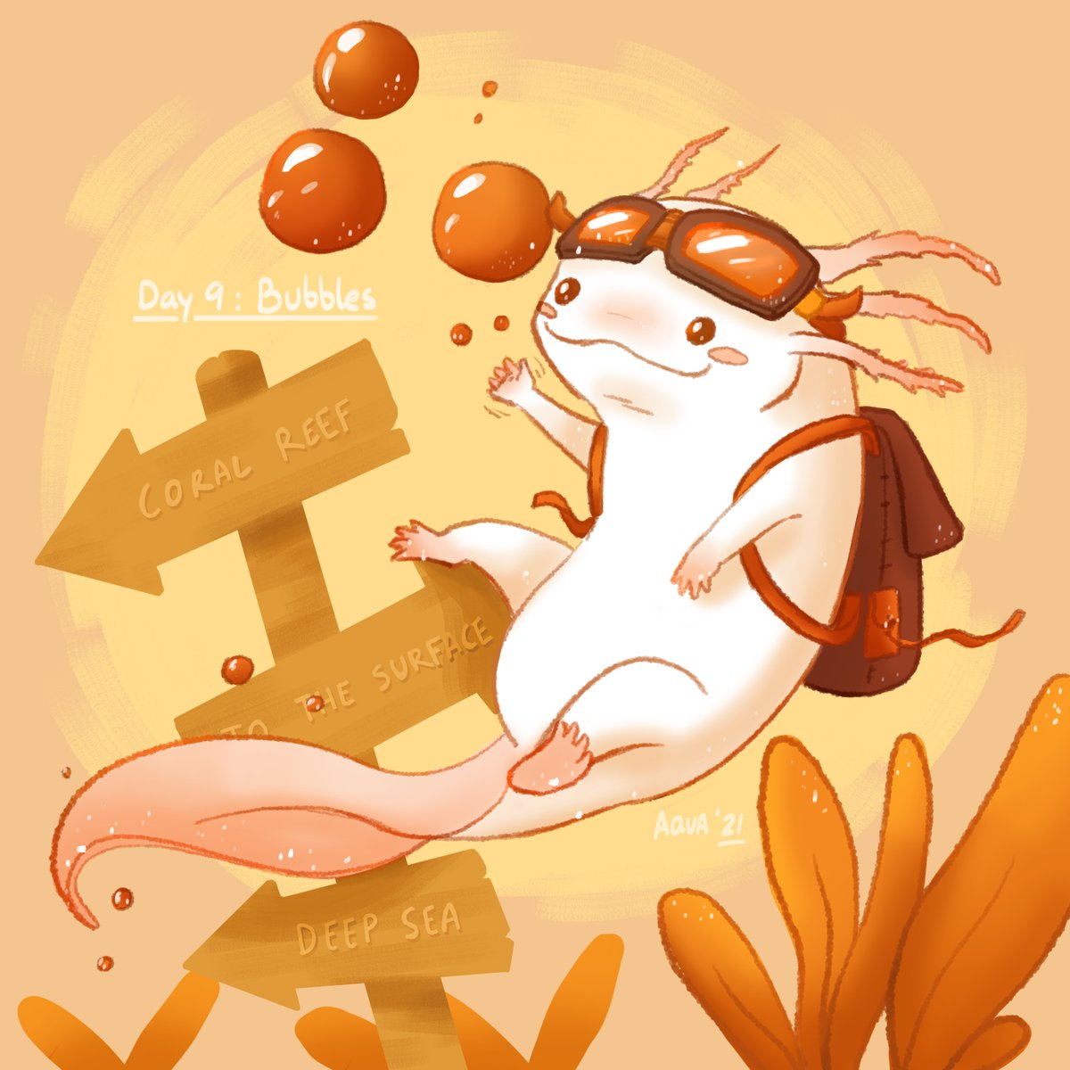 🍁🍂 Jeltober, day 9: bubbles 🍂🍁 Amamos al ajolote aventurero, ¿nos apuntamos a su viaje?💕 #jeltober #jeltober2021 #inktoberday9 #inktober2021