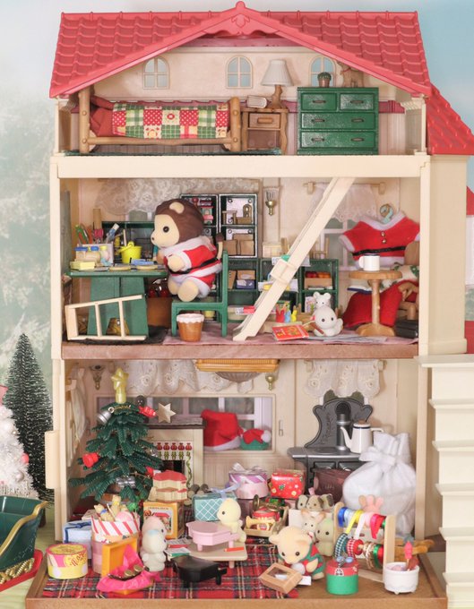 クリスマスプレゼントにおすすめの赤い屋根の大きなお家-屋根裏はひみつのお部屋- 🌲 右半分を使ってライオンサンタさんのお家にしました。他商品を足せば広くなり、小さく飾ることもできる自由さが良いです✯ #シルバニアファミリー #sylvanianfamilies #シルバニア公式アンバサダー #PR