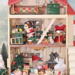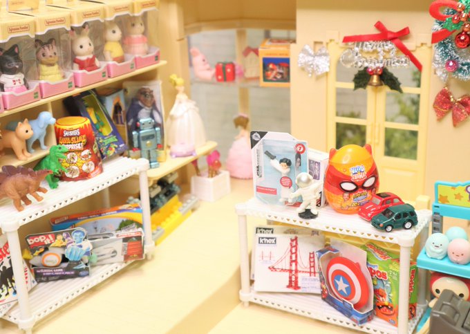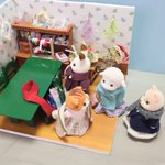 ナチュラルキッチンの「木製インテリア クリスマスマーケット(¥330)」 公式さんのインスタで見てひとめぼれしました🎄シルバニアの子供と赤ちゃんに良さそうなサイズ、小物は手持ちのものです。ひとつはオーナメント屋さんにしたい✨ #シルバニアファミリー #ナチュラルキッチン