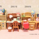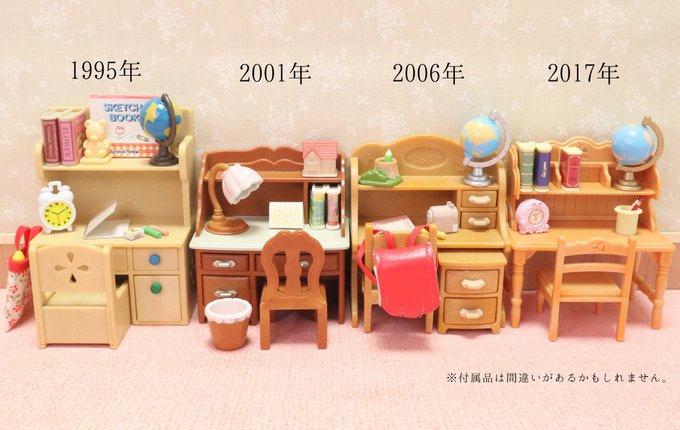 シルバニア展で洗濯機や掃除機が時代に合わせて進化してるっていう展示があったけど、勉強机もすごく時代と流行がわかるアイテムだと思う😊昔は昔の、今は今の良さがあって全部好き。 #シルバニアファミリー #昭和レトロ