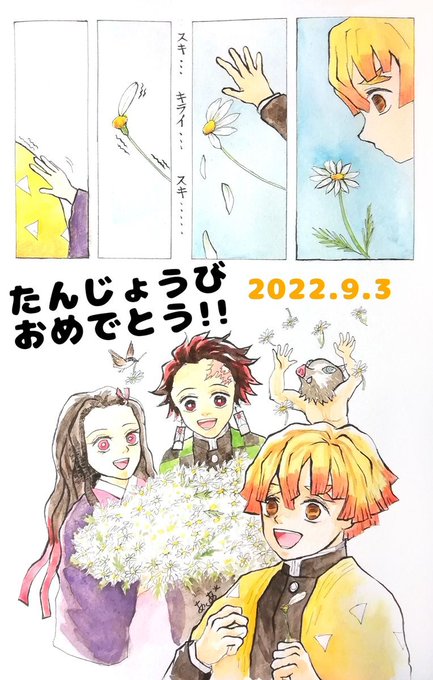 #竈門禰豆子誕生祭2022 #竈門禰󠄀豆子生誕祭2022 ねずゅこちゃんおめでとう🎉 【アレンジ/水彩】 🎴誕とお揃い風に花水木 いろいろたて込んでたので花言葉も季節も深く考えず気楽に描いた。