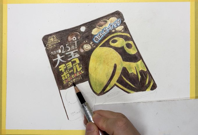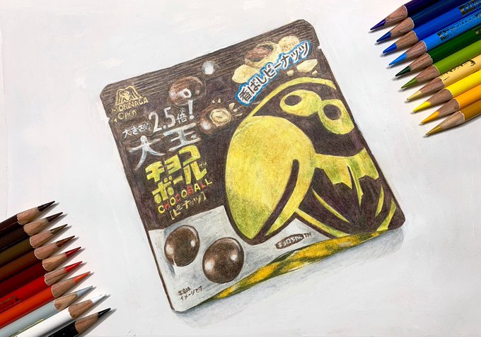 色鉛筆で大玉チョコボール描きました。 メイキング見ていただけると嬉しいです。 youtu.be/qpFH9iFgvmg #色鉛筆画 #チョコボール #森永製菓 #キョロちゃん #創活 #反拡 #アトリエの系譜3 #絵描きさんと繋がりたい #イラスト好きな人と繋がりたい #みんなで楽しむTwitter展覧会