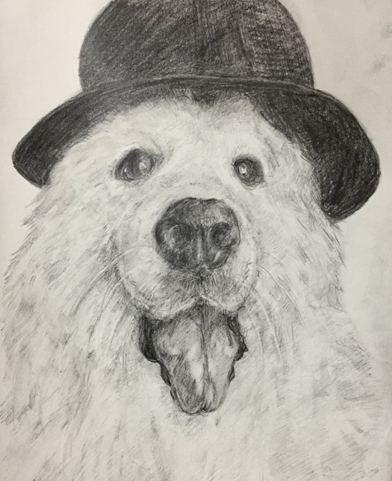 誰が興味あんねん過去絵シリーズ第14弾! 6年くらい前の絵 グレートピレニーズかな それにしても帽子適当すぎや #アナログ #絵描きさんと繋がりたい #イラスト好きな人と繋がりたい #みんなで楽しむTwitter展覧会 #反拡 #過去絵 #芸術の輪 #現代作家の環