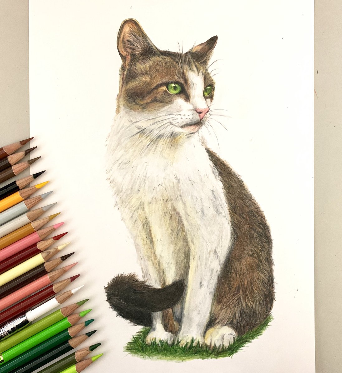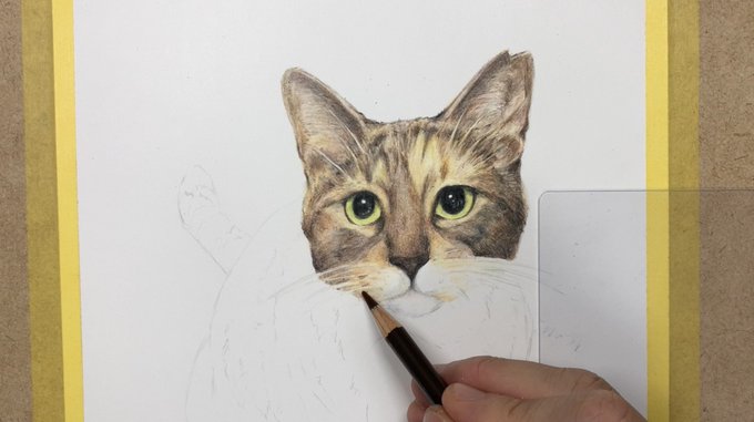 色鉛筆でねこ描いたよ😸 YouTube始めて今日で1年 体調悪くて休んでばっかだったな💦 メイキングです。 youtu.be/PUMTiNRtTpc #色鉛筆画 #絵師さんと繋がりたい #絵描きさんと繋がりたい #アトリエの系譜 #作品展示会 #創作さんと繋がりたい #みんなで楽しむTwitter展覧会
