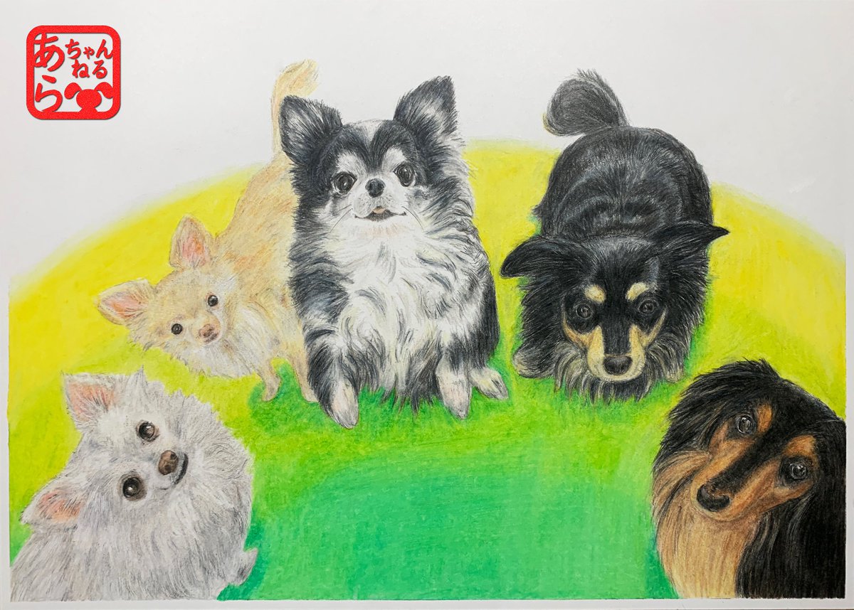 5匹のわんちゃん描きました。 みんなこっち見てます😍 メイキングです。観てくれたら嬉しいです。 youtu.be/r6a1bTXC51Y #色鉛筆画 #犬 #絵師さんと繋がりたい #絵描きさんと繋がりたい #アトリエの系譜 #作品展示会 #創作さんと繋がりたい #みんなで楽しむTwitter展覧会