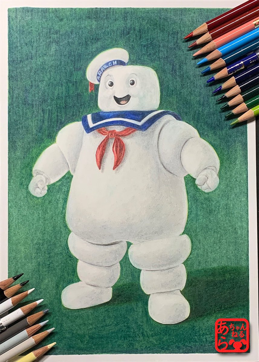 マシュマロマン描き上がりました! 帽子の文字がポイント😁 メイキング観てね youtu.be/bm2gbDrqsCE #マシュマロマン #ゴーストバスターズ #Ghostbusters #絵師さんと繋がりたい #絵描きさんと繋がりたい #アトリエの系譜S #作品展示会 #創作さんと繋がりたい #みんなで楽しむTwitter展覧会